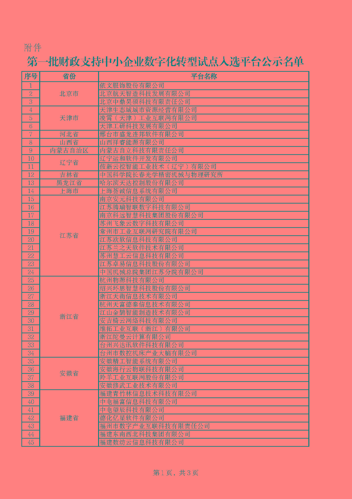 附件:第一批财政支持中小企业数字化转型试点入选平台公示名单