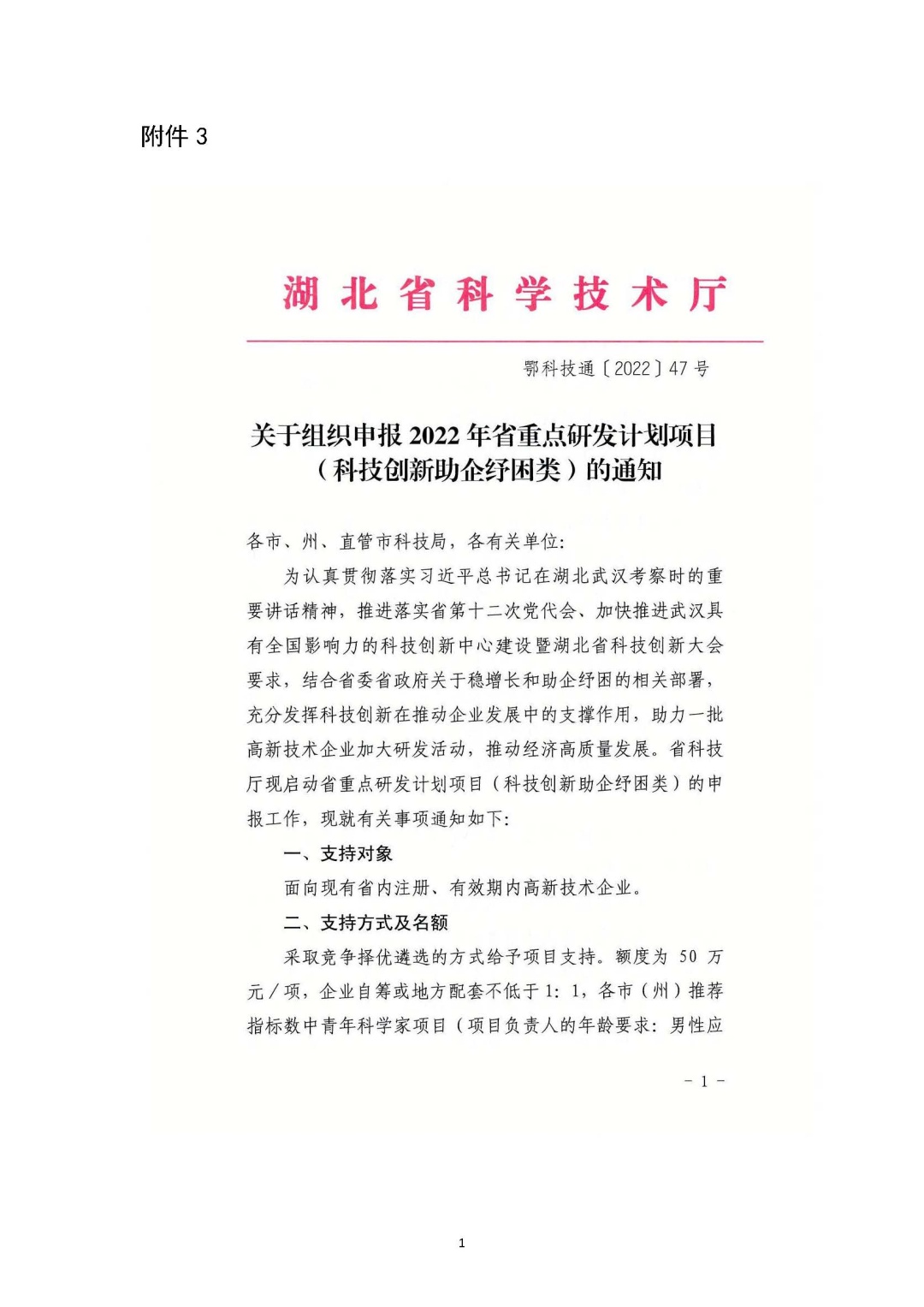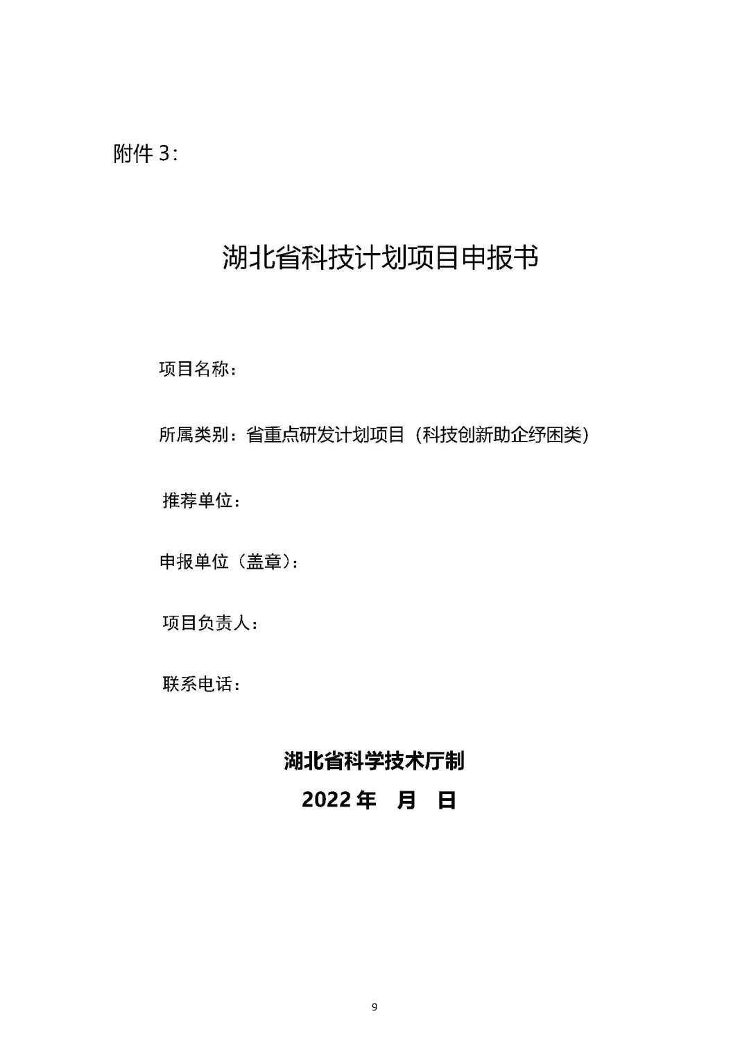 3.湖北省科学技术厅《关于组织申报2022年省重点研发计划项目(科技创新助企纾困类)的通知》.docx