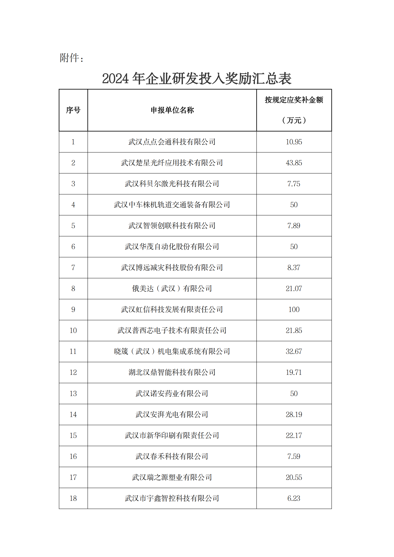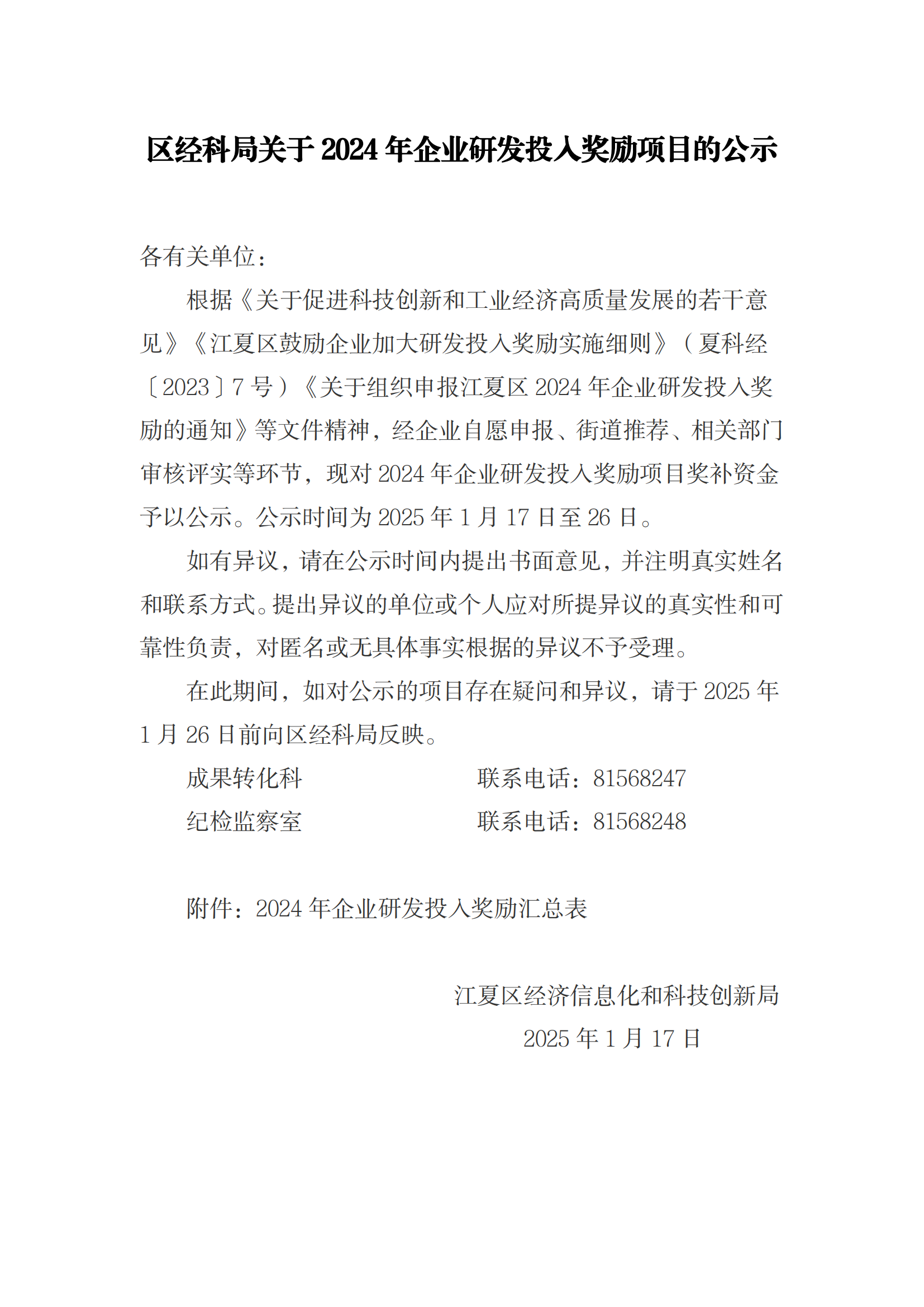 江夏区经科局关于2024年企业研发投入奖励项目的公示